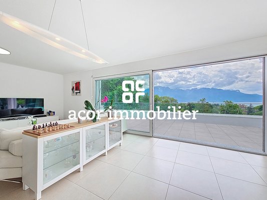 Acor Immobilier bietet Ihnen exklusiv diese herrliche 5,5-Zimmer-Maisonette-Penthouse-Wohnung mit atemberaubendem Blick auf die Berge und den Genfersee. Dieses seltene Anwesen befindet sich in einer kürzlich erbauten Residenz aus dem Jahr 2014 und