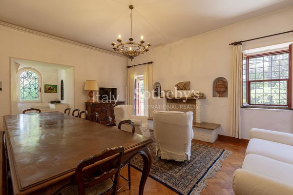 Die Hauptresidenz, derzeit in zwei unabhängige Wohneinheiten unterteilt, bewahrt die ursprüngliche Raumaufteilung und kann problemlos wieder zu einer einzigen Wohnlösung umgestaltet werden. Drei Salons mit Kaminen, zwei Speisesäle, sechs Schlafzimmer, fünf Badezimmer, ein großes Arbeitszimmer, drei Küchen, großzügige Personalbereiche und elegante, hochwertige Räume mit großen Volumen und wunderbar erhaltenen Originalmaterialien. Die weitläufigen, sonnigen Terrassen bieten ein beeindruckendes Panorama. Fünf Eingänge, darunter ein monumentaler Haupteingang, ermöglichen den Zugang zum Park und zur Villa. Zwei separate Gästehäuser vervollständigen das Anwesen.