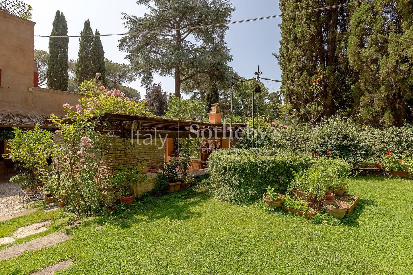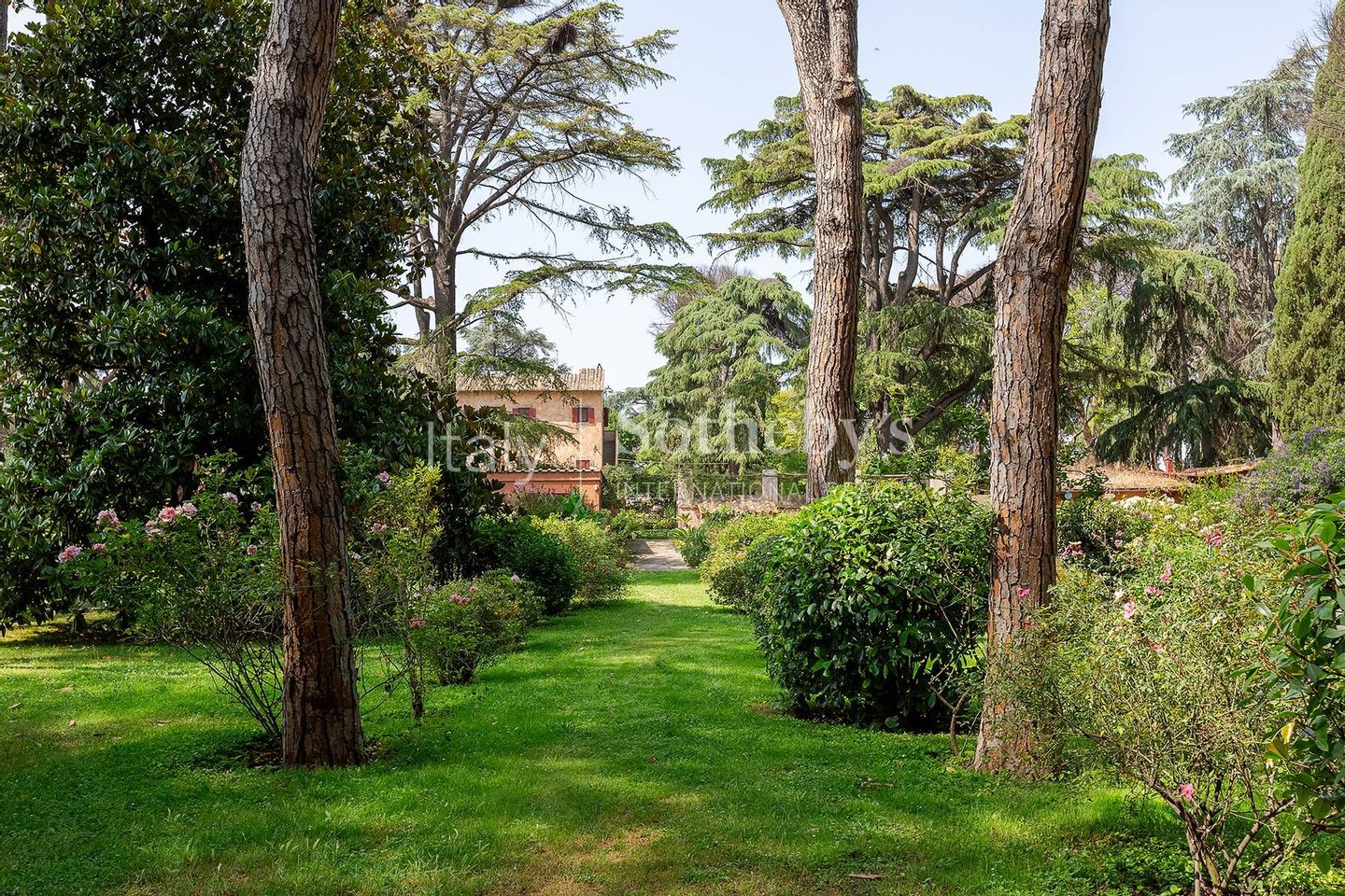 Das großzügige Anwesen ist von einem perfekt gepflegten privaten Park von 6.000 Quadratmetern umgeben, reich an Obstbäumen, jahrhundertealten Zedern, majestätischen Pinien und Zierpflanzen, die eine besonders reizvolle Atmosphäre schaffen. Malerische „Gebetswege' umrahmen den Garten, der durch einen originalen Brunnen ergänzt wird, gespeist von einer Quelle des Egeria-Wassers, was dem Ambiente zusätzliche Authentizität verleiht.