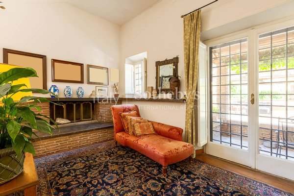 Außergewöhnliche freistehende Villa mit Charakter, gelegen in der ikonischen und eindrucksvollen Kulisse der Via Appia Antica, entstanden aus einem antiken Landhaus, das mit Sorgfalt und Respekt für die Tradition die originalen Farben und Linien