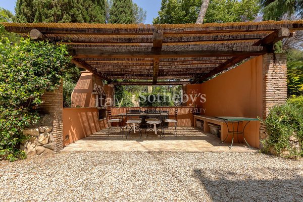 Außergewöhnliche freistehende Villa mit Charakter, gelegen in der ikonischen und eindrucksvollen Kulisse der Via Appia Antica, entstanden aus einem antiken Landhaus, das mit Sorgfalt und Respekt für die Tradition die originalen Farben und Linien bewahrt hat. Ein einzigartiges architektonisches Juwel, eingebettet in die Natur, zwischen Geschichte und Moderne, das höchsten Wohnkomfort bietet und sich perfekt für repräsentative Anlässe und unvergessliche gesellige Momente eignet.
