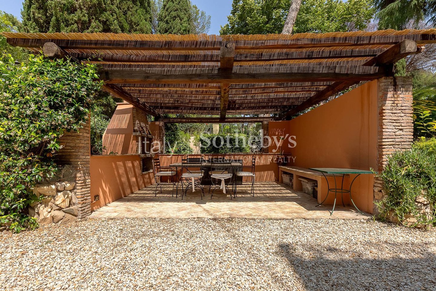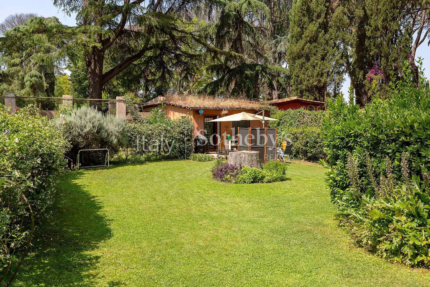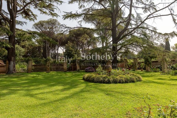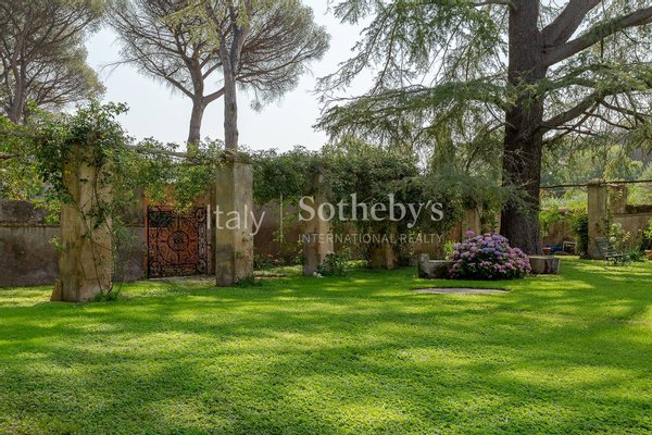 Das großzügige Anwesen ist von einem perfekt gepflegten privaten Park von 6.000 Quadratmetern umgeben, reich an Obstbäumen, jahrhundertealten Zedern, majestätischen Pinien und Zierpflanzen, die eine besonders reizvolle Atmosphäre schaffen. Malerische „Gebetswege' umrahmen den Garten, der durch einen originalen Brunnen ergänzt wird, gespeist von einer Quelle des Egeria-Wassers, was dem Ambiente zusätzliche Authentizität verleiht.