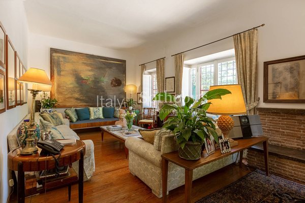 Außergewöhnliche freistehende Villa mit Charakter, gelegen in der ikonischen und eindrucksvollen Kulisse der Via Appia Antica, entstanden aus einem antiken Landhaus, das mit Sorgfalt und Respekt für die Tradition die originalen Farben und Linien