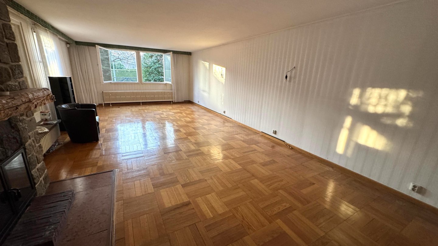 Ihr neues Zuhause ist ein Einfamilienhaus-Bungalow aus den 70-er Jahren mit zwei Bädern, zwei Garagen, großzügigen lichtdurchfluteten Räumen und Platz fürs Home-Office und Heimkino im Untergeschoss!