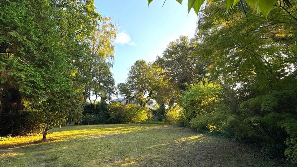 Das mit breiten Rasenflächen und schönem, alten Baumbestand aufwartende Grundstück bietet durch seine günstige Ecklage die Privatsphäre, die Sie sich schon immer gewünscht haben.