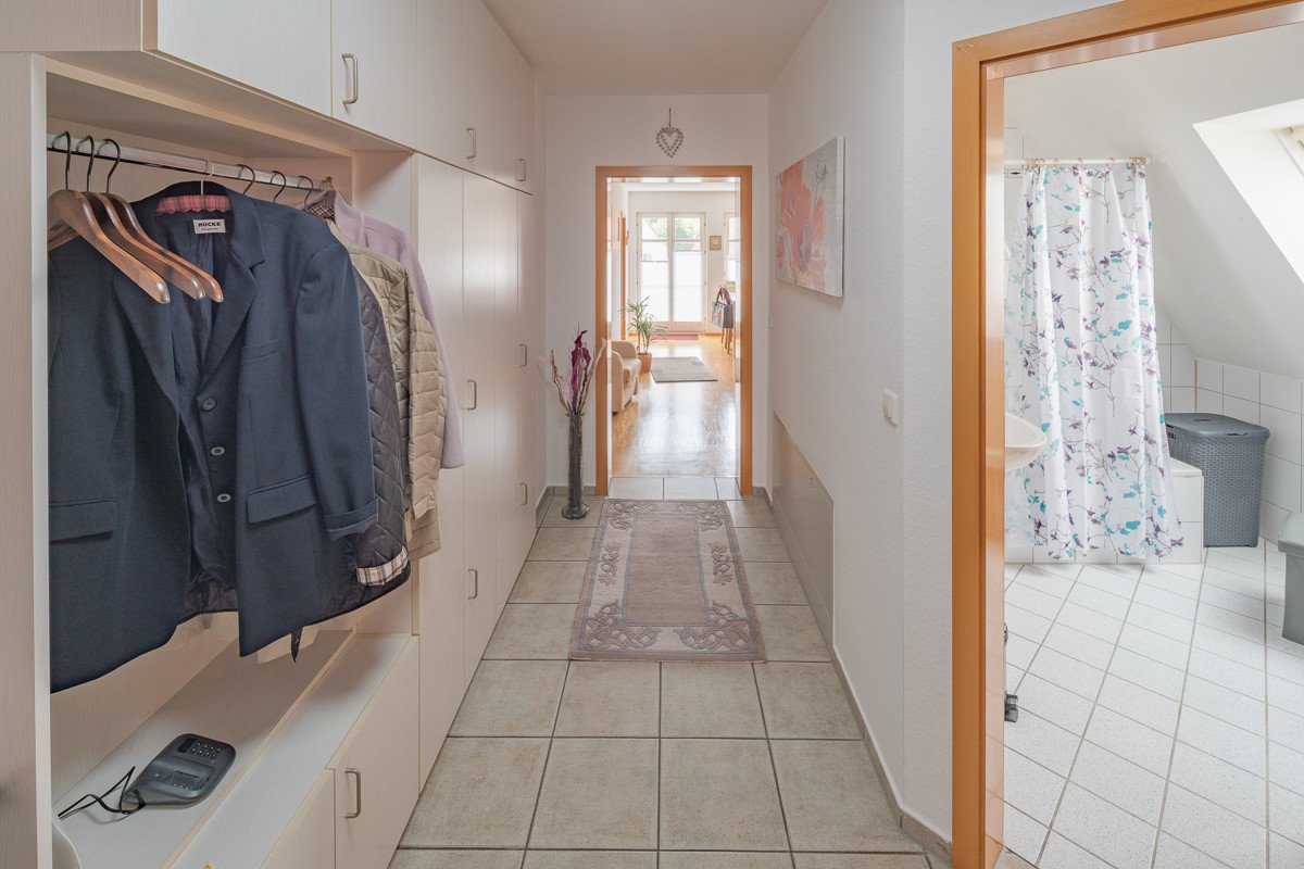 Es liegt im Ortskern. Die Lage ist sehr optimal, da es alles gibt, was man braucht: Eine Bäckerei, eine Schule und eine Gaststätte befinden sich direkt gegenüber. Und trotzdem liegt man ländlich.