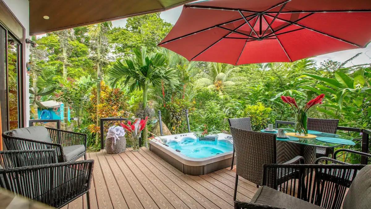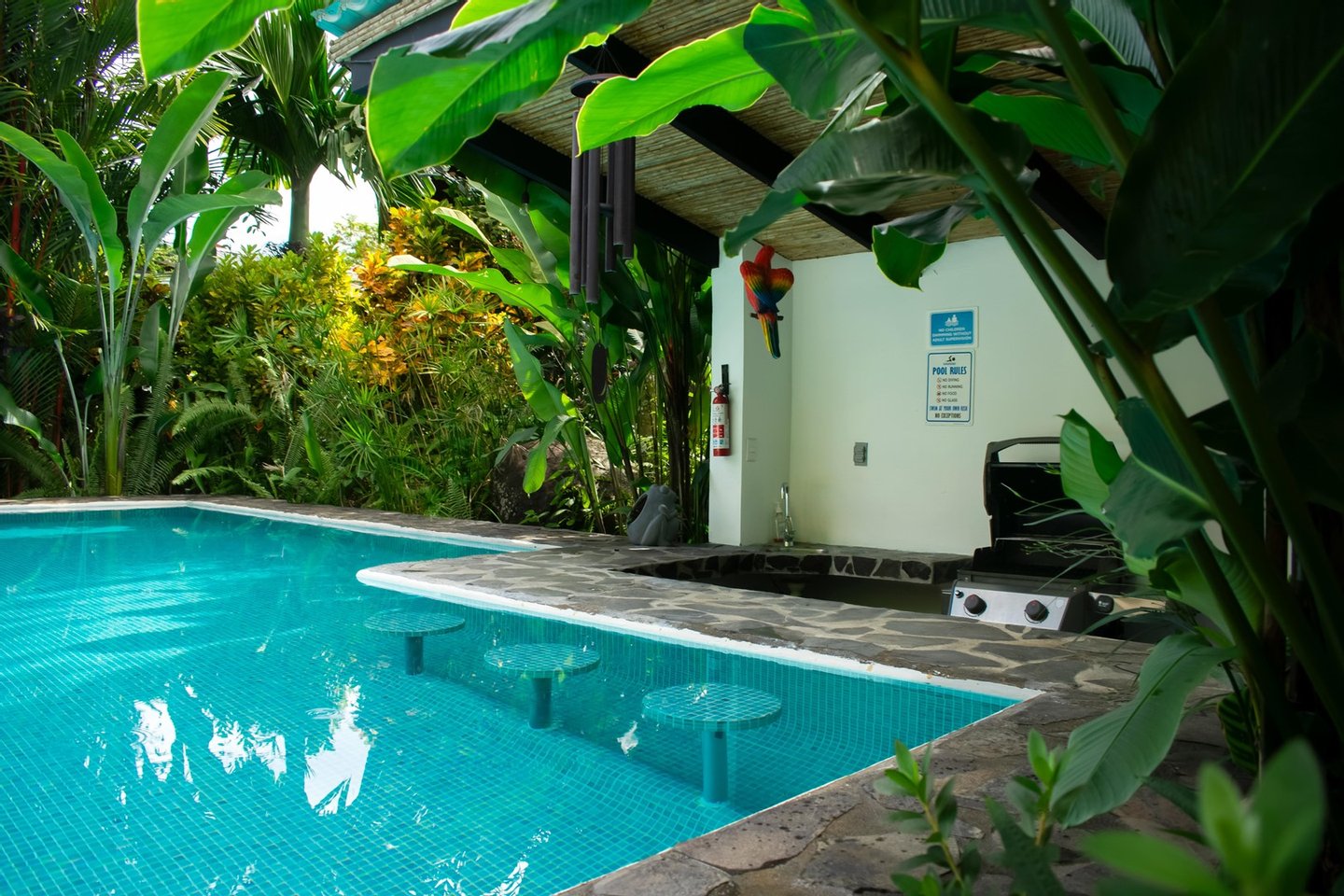 Natürliche Verbindung: Die Villen verfügen über große Glastüren, die die Innenräume mit dem Außenbereich verbinden, so dass Sie jederzeit die Natur genießen können. Beobachten Sie Tukane, Scharlett-Aras und andere exotische Arten bequem von Ihrer Villa aus.