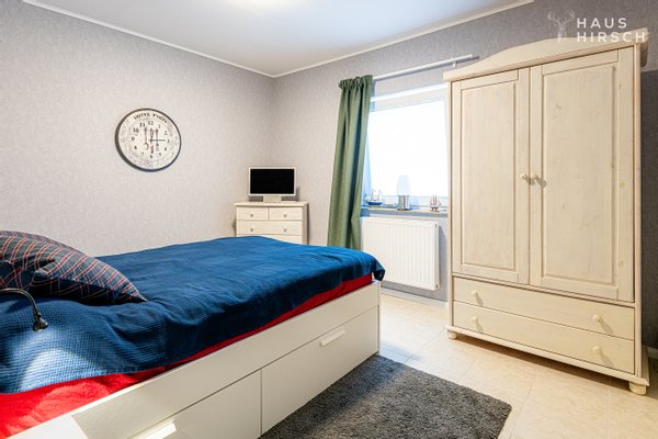 Rechts von der Küche geht ein kleiner Flur ab, an diesen sind die beiden gemütlichen Schlafzimmer angeschlossen. Die Schlafräume bieten dabei ausreichend Platz für erholsame Nächte.
