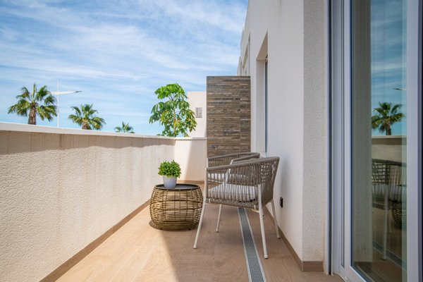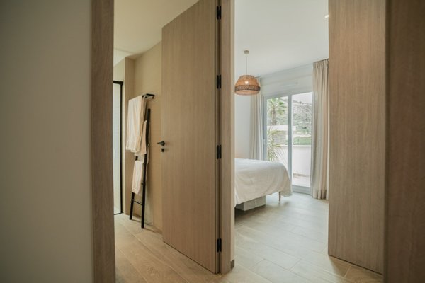 Die Schlafzimmer verfügen über Einbauschränke für optimalen Stauraum, während die Badezimmer mit modernen Annehmlichkeiten wie ebenerdiger Dusche, Fußbodenheizung, Waschtisch und Spiegel ausgestattet sind. Die Klimaanlage sorgt das ganze Jahr über für Komfort.