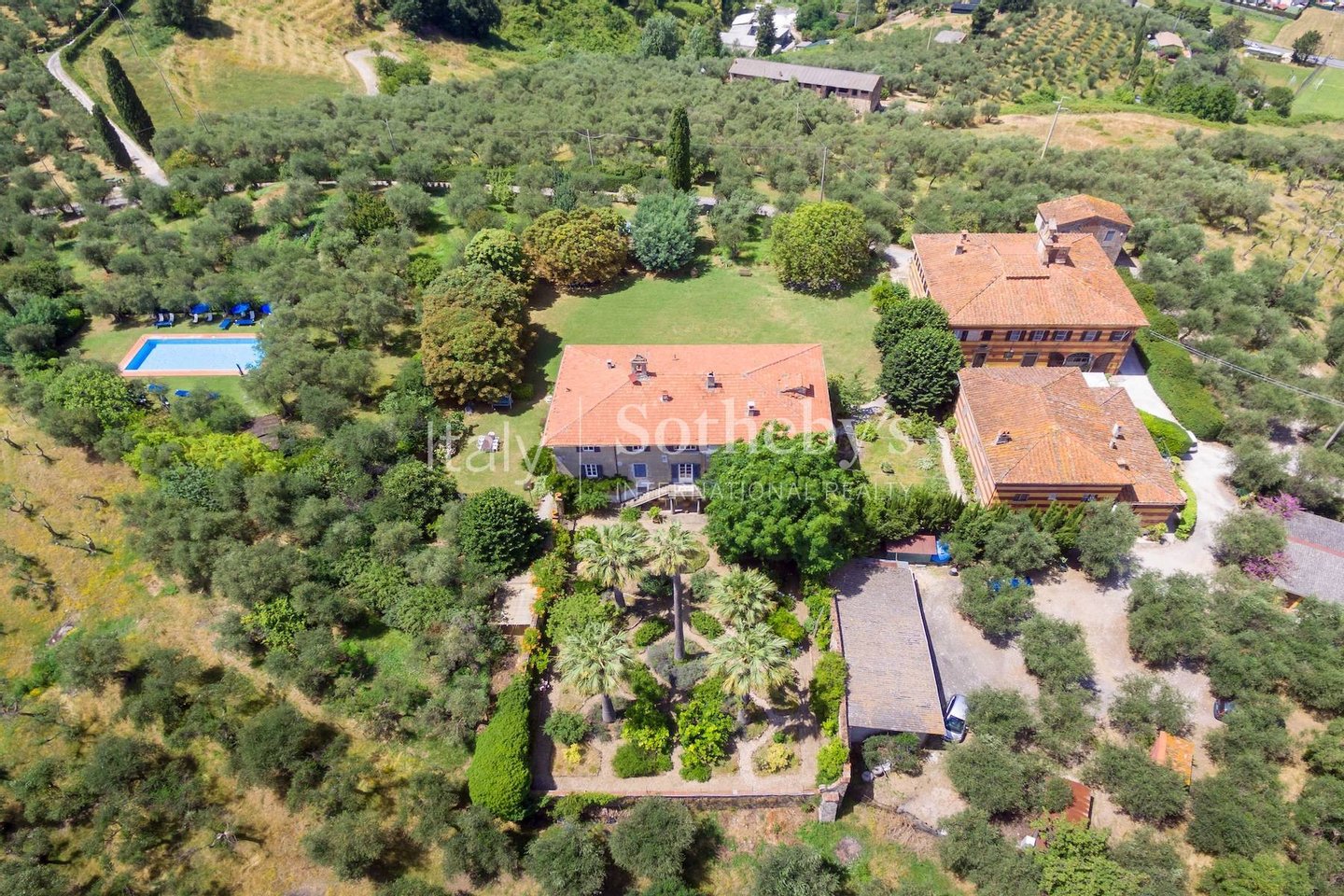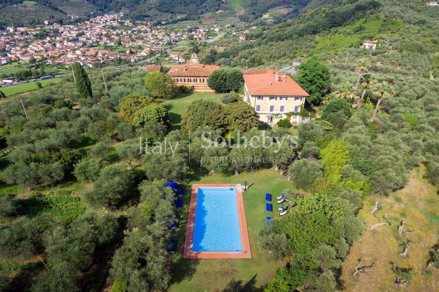 Das Anwesen befindet sich in der Gemeinde Massarosa, auf den ersten Hügeln mit Blick auf den Lago di Massaciuccoli, in dominanter Lage mit herrlichem Blick auf das Meer, die Ebene und die Stadt Pisa. Es erstreckt sich über etwa 50 Hektar Land, davon 34 Hektar mit Olivenhainen auf Terrassen und 7 Hektar bewässertem Ackerland, mit etwa 10.000 Olivenbäumen und einer durchschnittlichen Jahresproduktion von etwa 100 Zentnern extra nativem Olivenöl in günstigen Jahren.