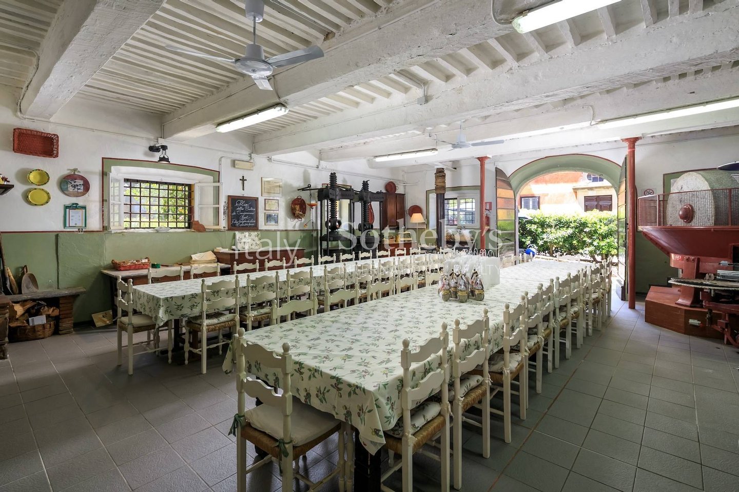 Das Anwesen befindet sich in der Gemeinde Massarosa, auf den ersten Hügeln mit Blick auf den Lago di Massaciuccoli, in dominanter Lage mit herrlichem Blick auf das Meer, die Ebene und die Stadt Pisa. Es erstreckt sich über etwa 50 Hektar Land, davon 34 Hektar mit Olivenhainen auf Terrassen und 7 Hektar bewässertem Ackerland, mit etwa 10.000 Olivenbäumen und einer durchschnittlichen Jahresproduktion von etwa 100 Zentnern extra nativem Olivenöl in günstigen Jahren.