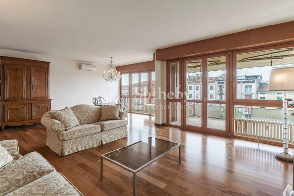 Das Ergebnis einer stilvollen Neugestaltung mit Anklängen an die 1970er Jahre verbindet die Wohnung gekonnt Retro-Charme mit modernem Komfort - in einem zurückhaltenden und edlen Stil. Der großzügige, lichtdurchflutete Wohnbereich umfasst eine private Terrasse - ein echtes Wohnzimmer unter freiem Himmel - mit Blick auf die Corso Porta Nuova, die berühmte Allee zwischen der Porta Nuova, den Portoni della Bra und der renommierten Piazza Bra.