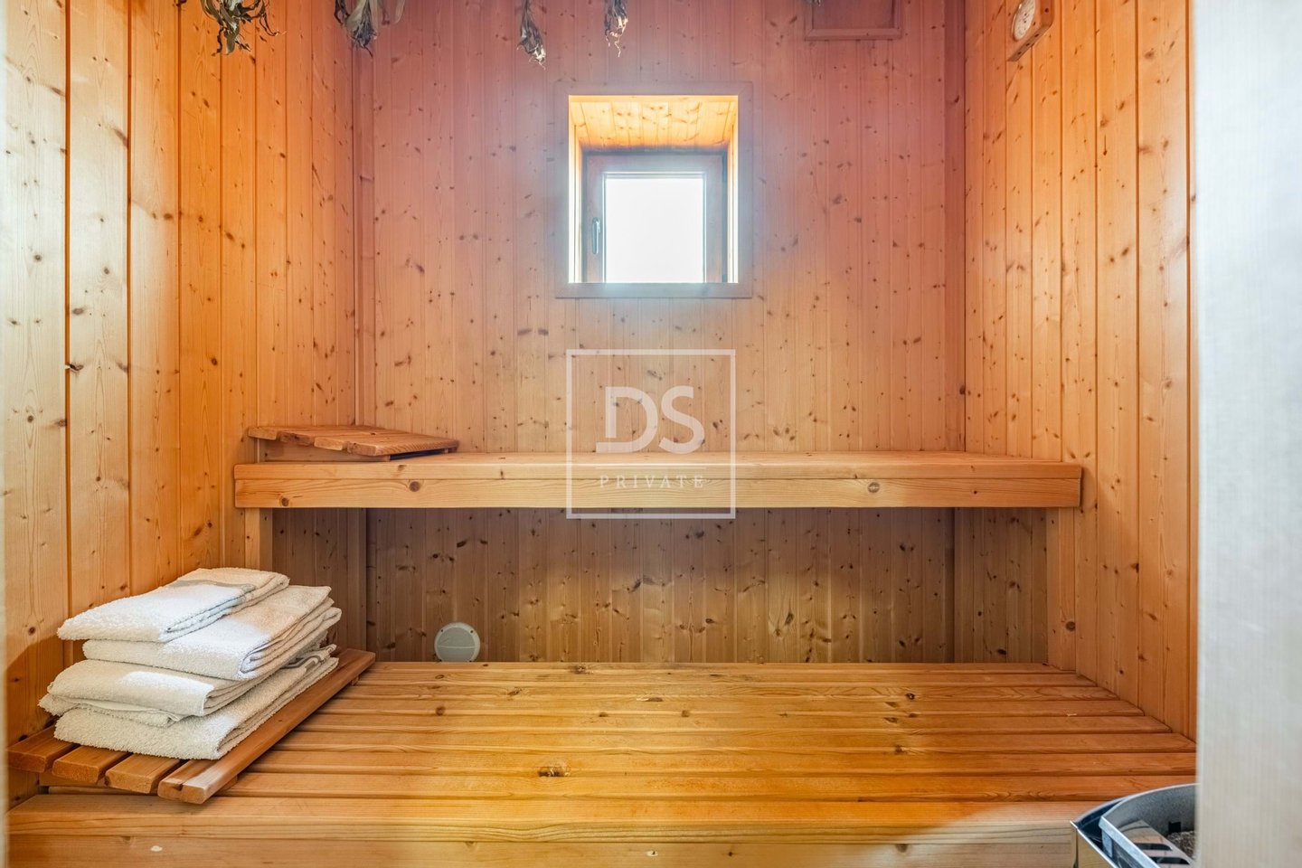 Ein charmanter Innengarten ergänzt die Ästhetik, und elektrische Rollläden bieten Komfort. Für Momente der Entspannung steht eine heiße Sauna zur Verfügung, während das Ambient-Soundsystem für ein beeindruckendes Klangerlebnis in der gesamten Residenz sorgt. Die Sicherheit ist durch Videoüberwachung und Video-Gegensprechanlage sowie Holzimitat PVC-Rahmen mit Doppelrahmen in den Zimmern gewährleistet.