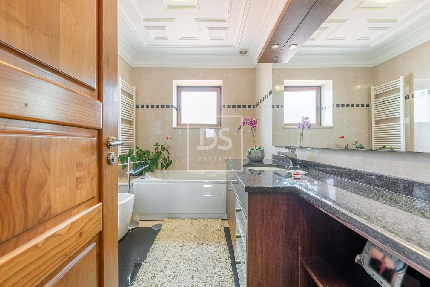 Das Untergeschoss der Villa ist ein multifunktionaler Raum mit einer großen Garage von 80 m², einer Waschküche, einer zusätzlichen Küche, einem Spielzimmer, einem weiteren Schlafzimmer und einem Badezimmer. Darüber hinaus verfügt es über einen privaten Fitnessraum, mit dem Sie Ihre Trainingsroutine beibehalten können, ohne das Haus zu verlassen.