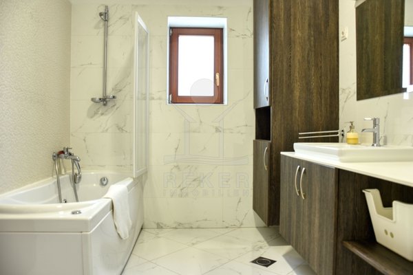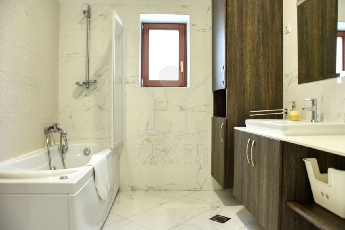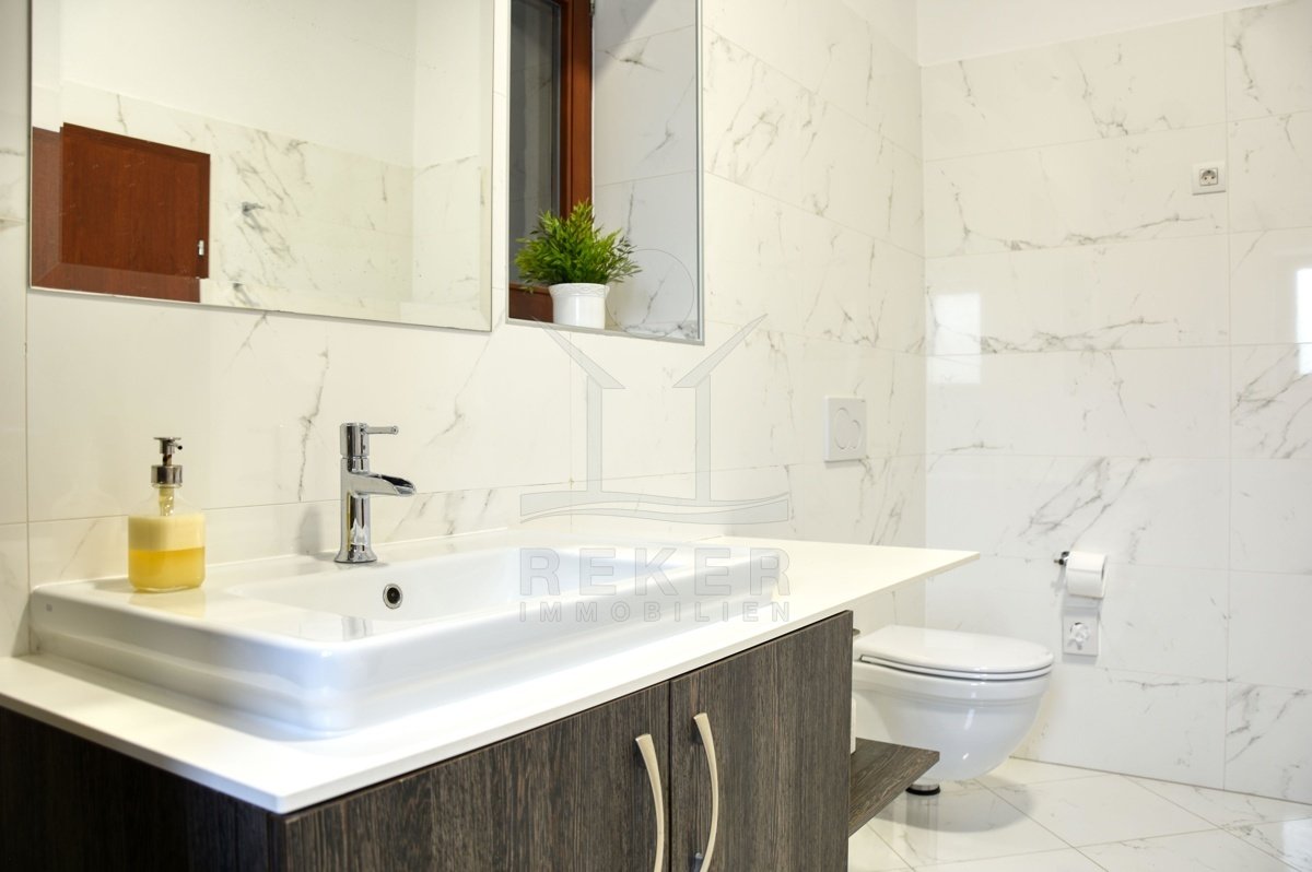 Ein kleines Stück Ruhe inmitten von Istrien – genau das erwartet Sie hier, am Waldrand nähe Kringa in der Gemeinde Tinjan. Die Steinvilla steht in einem ruhigen Wohngebiet mit viel Abstand zur Nachbarschaft. Bis zur Küste sind es nur 15 Kilometer, der Alltag spielt sich hier aber ganz bewusst fern vom Trubel ab. Die Ausrichtung nach Südwesten bringt angenehmes Licht bis in die Abendstunden. Drei Parkplätze stehen auf dem Grundstück bereit, zwei davon überdacht – angenehm im Sommer wie im Winter.