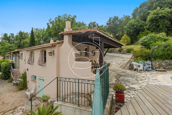 Zwischen den historischen, hochgelegenen Dörfern Fayence und Mons gelegen, bietet das Haus ein klimatisiertes Wohn- und Esszimmer mit Kamin, eine offene Küche mit Zugang zu zwei überdachten Terrassen, zwei Schlafzimmer sowie ein Duschbad mit WC.