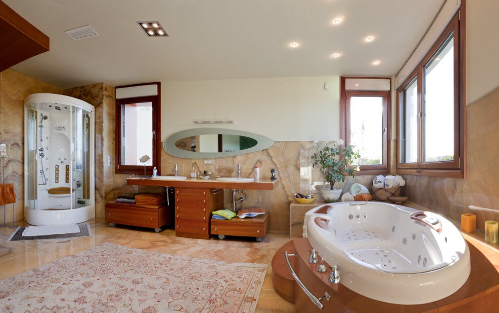 Der beste Ort der Immobilie: Das fabelhafte Bad im Hauptschlafzimmer mit Whirlwanne und Ausblick.