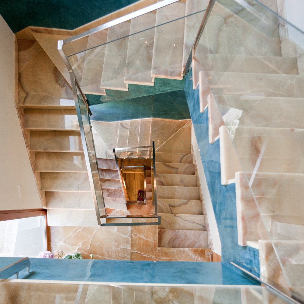 Das Untergeschoss umfasst eine große Garage mit automatischem Tor, Waschküche sowie Fitnessraum mit Sauna und Bad. Vom Kellergeschoss aus gelangt man direkt in den Hauptwohnbereich.
