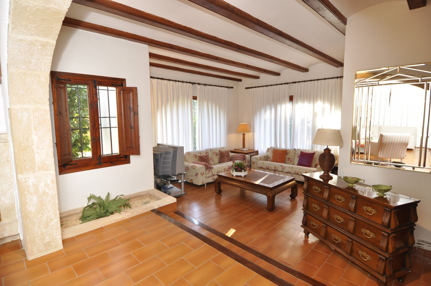 Diese elegante, in einem für die Region typischen Stil erbaute Villa befindet sich in der vornehmen Wohngegend El Tosalet in Jávea, Alicante, an der Costa Blanca, wenige Minuten vom Strand und sämtlichen Annehmlichkeiten entfernt.