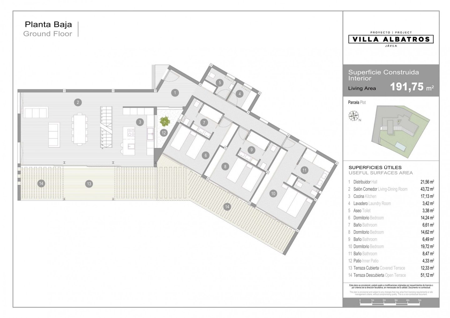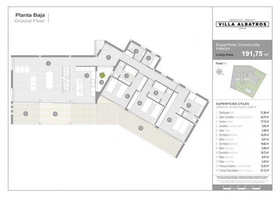 Die Immobilie bietet luxuriöse Ausstattungen und modernste Technologie wie Fußbodenheizung, Domotik-System usw. Sie ist auf drei Etagen verteilt und umfasst im Erdgeschoss ein großes Wohn-Esszimmer mit voll ausgestatteter Küche, Gäste-WC sowie drei Doppelschlafzimmer, jeweils mit eigenem Bad en suite.
