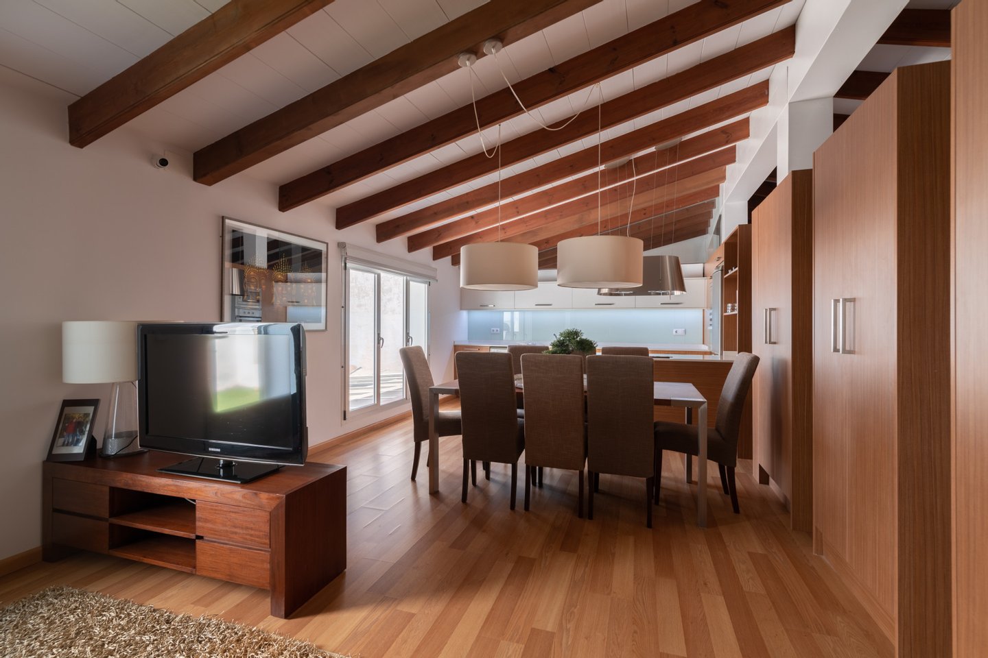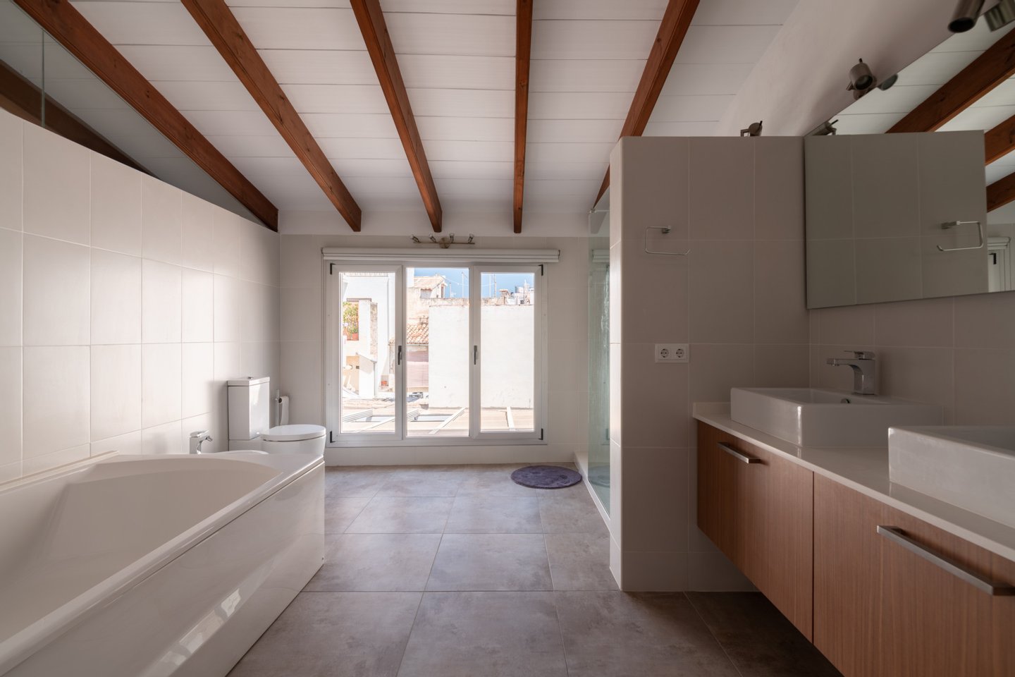 Die zweite Etage ist eine moderne Wohnung bestehend aus Wohn-Esszimmer mit offener Küche, Schlafzimmer mit eigenem Bad und ein weiteres Wohnzimmer, das in ein anderes Schlafzimmer umgewandelt werden kann.