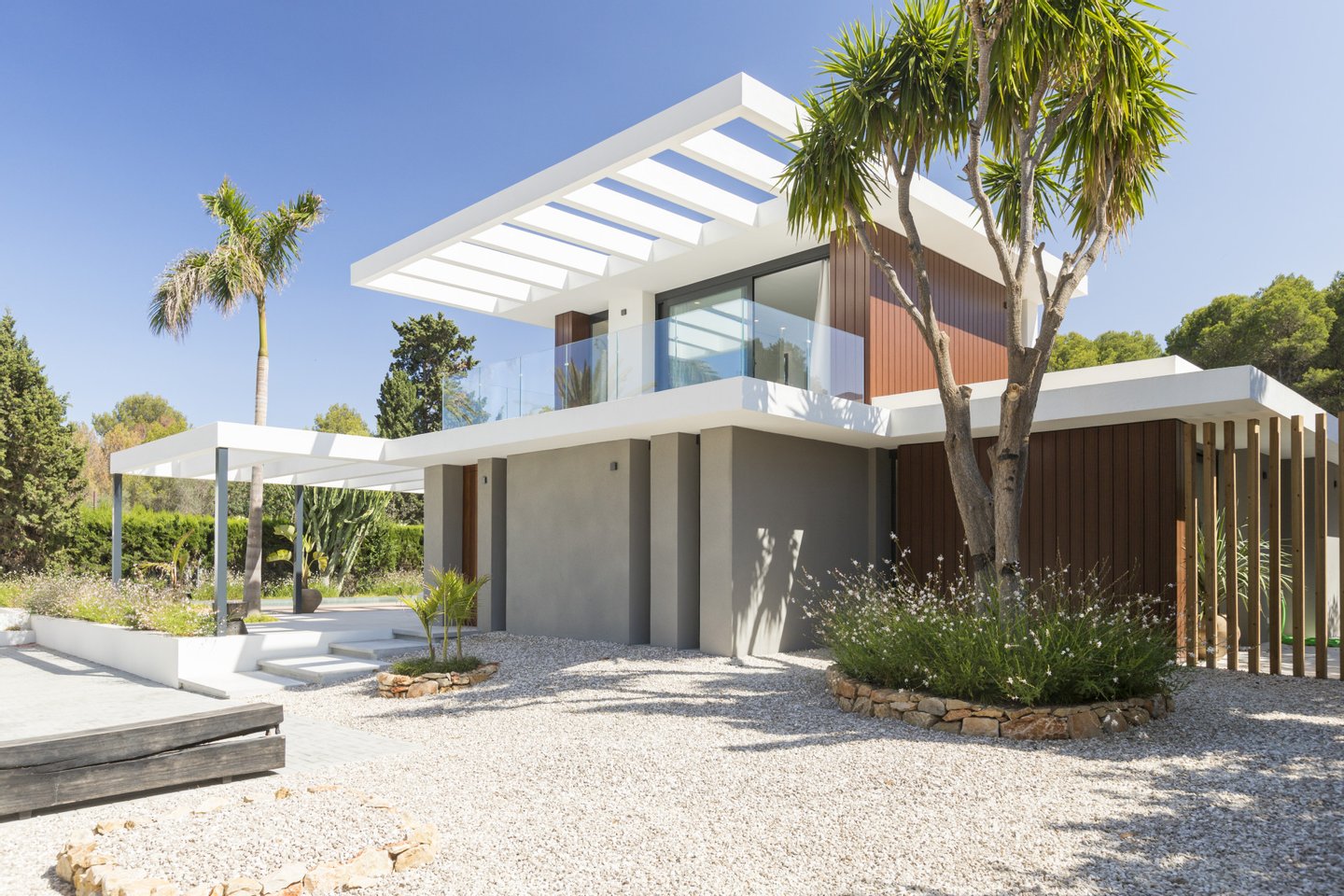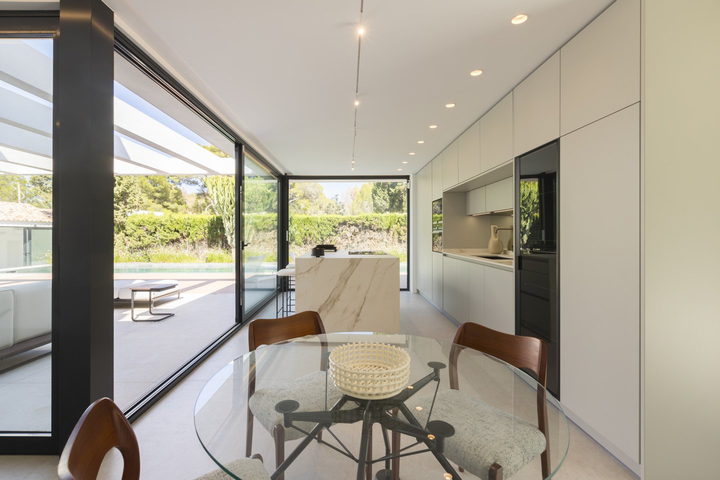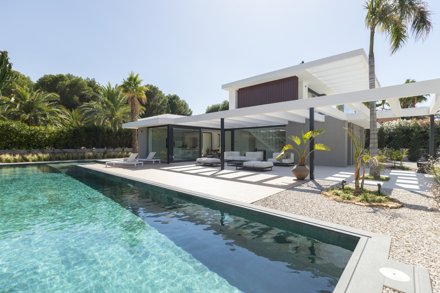 Auf einem flachen und privaten Grundstück in der wunderschönen Enklave Las Rotas in Dénia befindet sich dieses moderne und funktionale Haus mit viel natürlichem Licht.