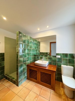 Die Villa verfügt über sechs großzügige Schlafzimmer, von denen zwei über ein eigenes Bad verfügen, was Privatsphäre und Komfort garantiert. Darüber hinaus gibt es vier voll ausgestattete Badezimmer, die ideal auf die Bedürfnisse einer großen Familie oder von Gästen zugeschnitten sind.