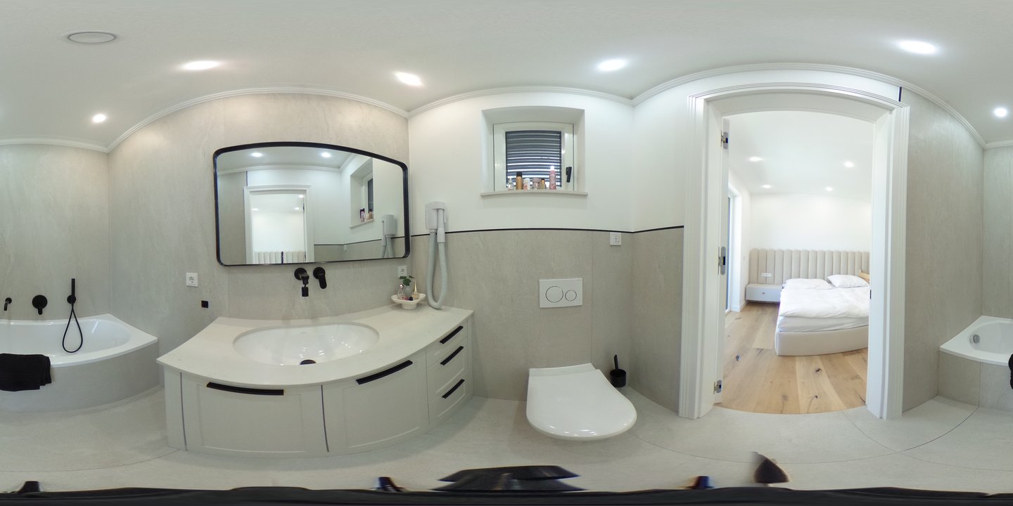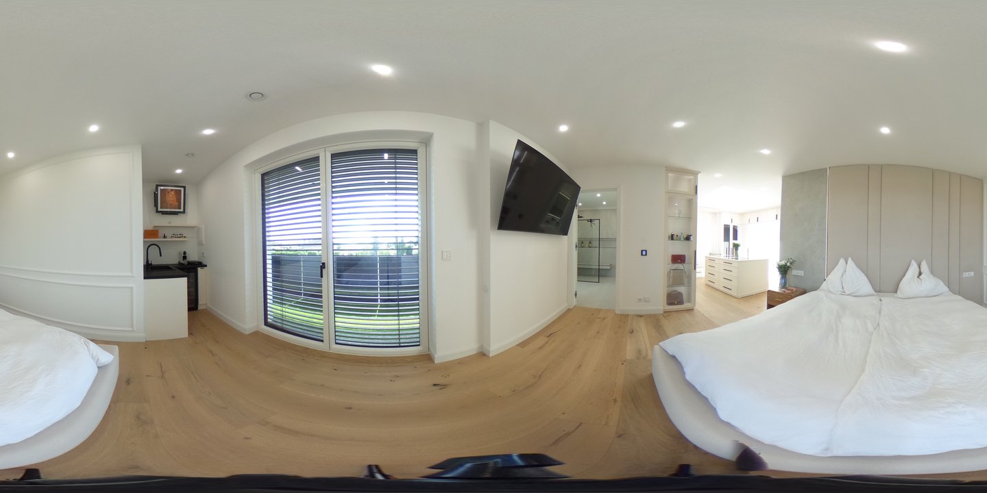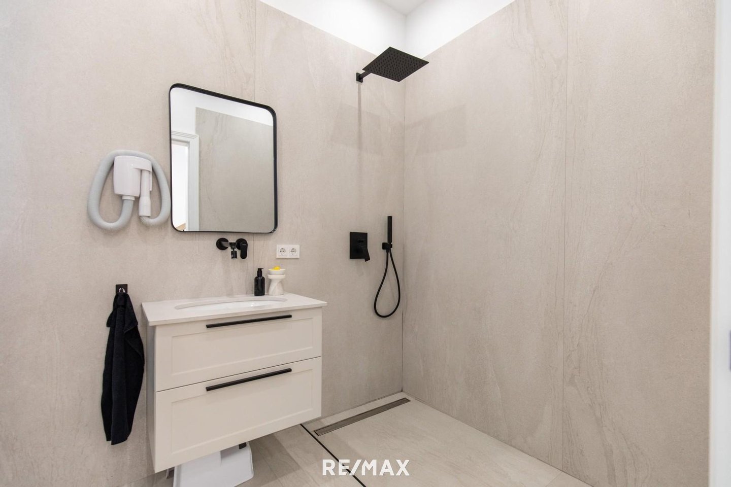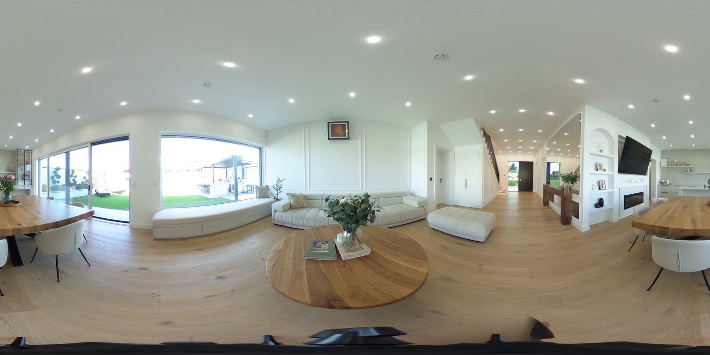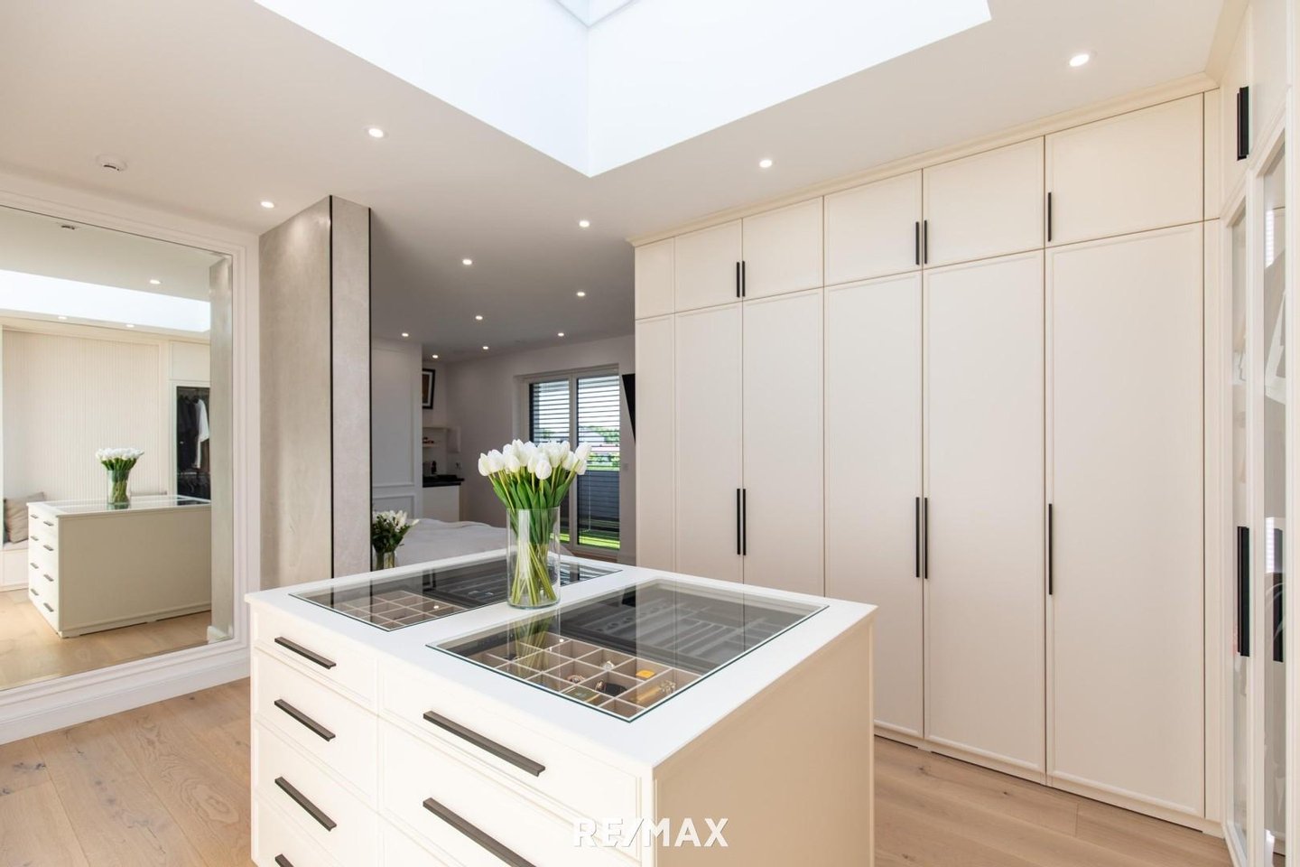 Großzügige Räume, bodentiefe Fenster und eine Deckenhöhe bis zu 3m sorgen für ein offenes Raumgefühl mit viel Licht und Transparenz. Der offen gestaltete Wohnbereich mit hochwertiger Tischlerküche samt Beiküche wird zum repräsentativen Mittelpunkt des Hauses – ideal für entspanntes Wohnen und stilvolles Hosting.