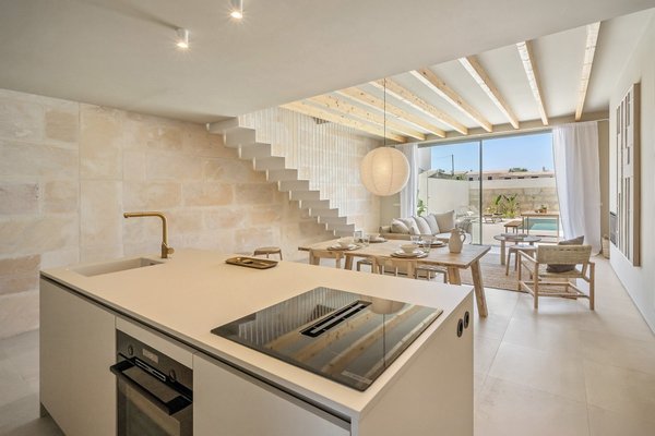 Dieses wunderschön gestaltete Haus in Ariany liegt in einer ruhigen Dorfstraße und wurde kürzlich fertiggestellt. Es verbindet moderne Architektur und klassische Eleganz auf zwei hellen Ebenen mit einer großzügigen Wohnfläche von rund 152 m².
