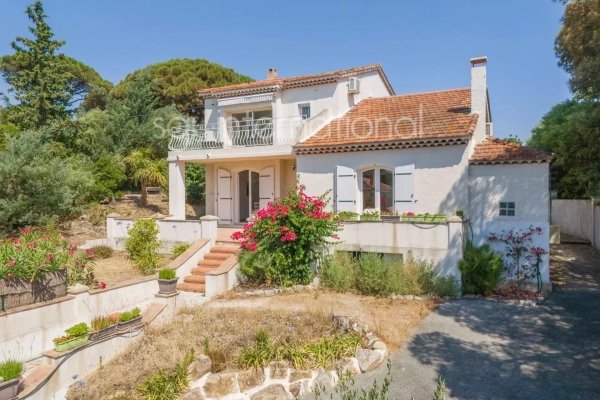 Diese schöne Villa von 150 m² liegt in einer ruhigen Sackgasse, nur 200 m vom Strand und nur wenige Gehminuten vom Zentrum von Les Issambres und dem Hafen von San Peire entfernt, und bietet Meerblick von der oberen Etage aus.