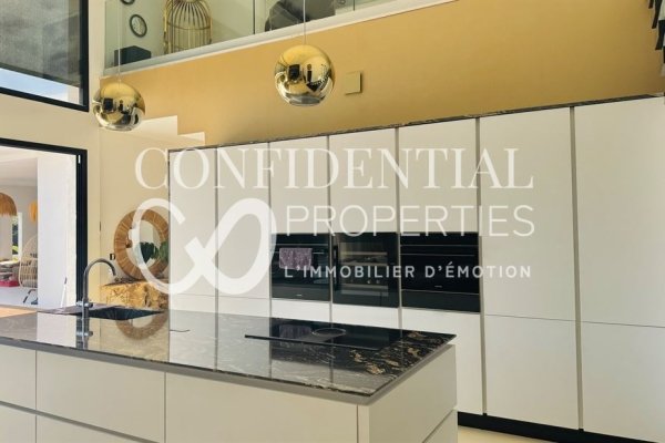 Der Außenbereich ist eine wahre Oase der Entspannung: Ein prächtiger 15 x 5 Meter großer Spiegelpool, ein 60 m² großes Poolhaus, ein 20 m² großes Spa und eine 45 m² große Doppelgarage vervollständigen dieses außergewöhnliche Anwesen.