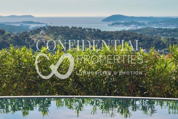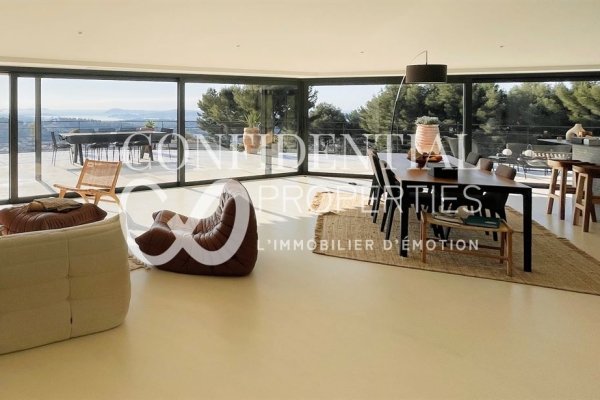Nur 15 Minuten vom Hafen von Sanary-sur-Mer entfernt. In dominanter Lage auf den Hügeln von Ollioules gelegen, bietet diese außergewöhnliche Villa von ca. 300m², die von einem renommierten Architekten entworfen wurde, einen atemberaubenden Blick auf die umliegende Natur und das Meer.