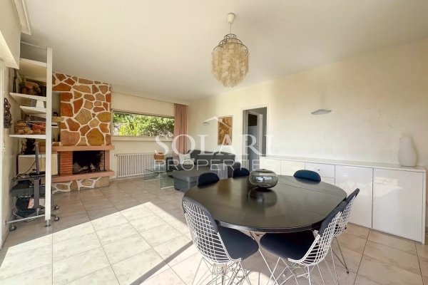 Das Anwesen bietet einen Panoramablick auf das Meer über die Bucht von Cannes und ist derzeit in zwei unabhängige Wohnungen aufgeteilt, die sich jeweils auf einer eigenen Ebene befinden. Beide Einheiten verfügen über ein Wohnzimmer mit Terrasse, eine separate Küche, zwei Schlafzimmer und ein Badezimmer. Eine großartige Wahl für eine große Familie, ein Ferienhaus oder eine Mietinvestition.