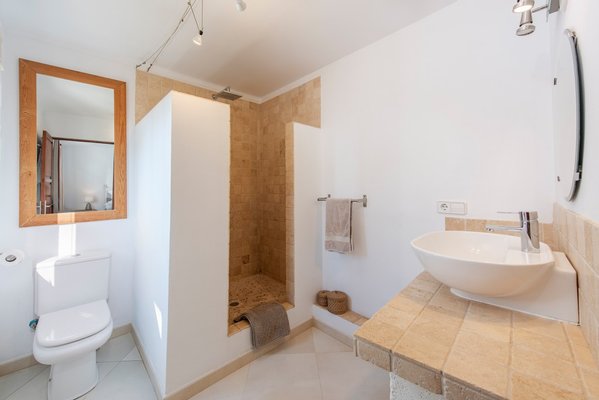 Im Obergeschoss, das sowohl über eine Innentreppe als auch über eine Außentreppe vom Innenhof aus erreichbar ist, befinden sich drei geräumige Schlafzimmer und drei moderne Badezimmer, darunter zwei en-suite. Die obere Terrasse erhöht die Attraktivität des Außenbereichs und bietet zusätzlichen Platz zum Entspannen oder für gesellige Anlässe.