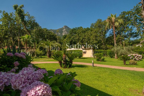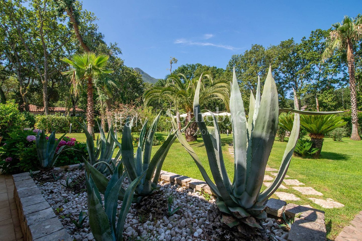 Einzigartige Villa auf einer Ebene in der herrlichen Baia d'Argento in Sabaudia, eingebettet in einen üppigen Privatgarten von ca. 5.000 m², unterteilt in vier Bereiche mit Eichen, Korkeichen, Palmen, Magnolien, Cycaspflanzen, Obstbäumen und einem