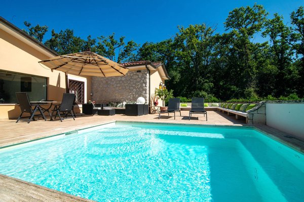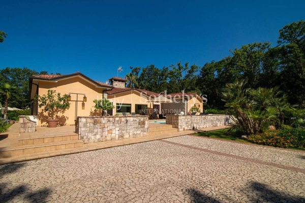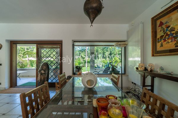Die Immobilie befindet sich im Nationalpark Circeo, in privilegierter Lage, nur wenige Schritte vom Meereszugang Torre Paola entfernt. Die Villa wurde konzipiert, um jeden Moment in höchstem Komfort zu genießen, und verfügt über ein großzügiges Wohnzimmer mit dem Design-Kamin 'Giro Focus', bekannt aus dem Guggenheim-Museum.