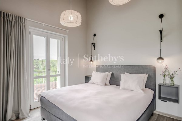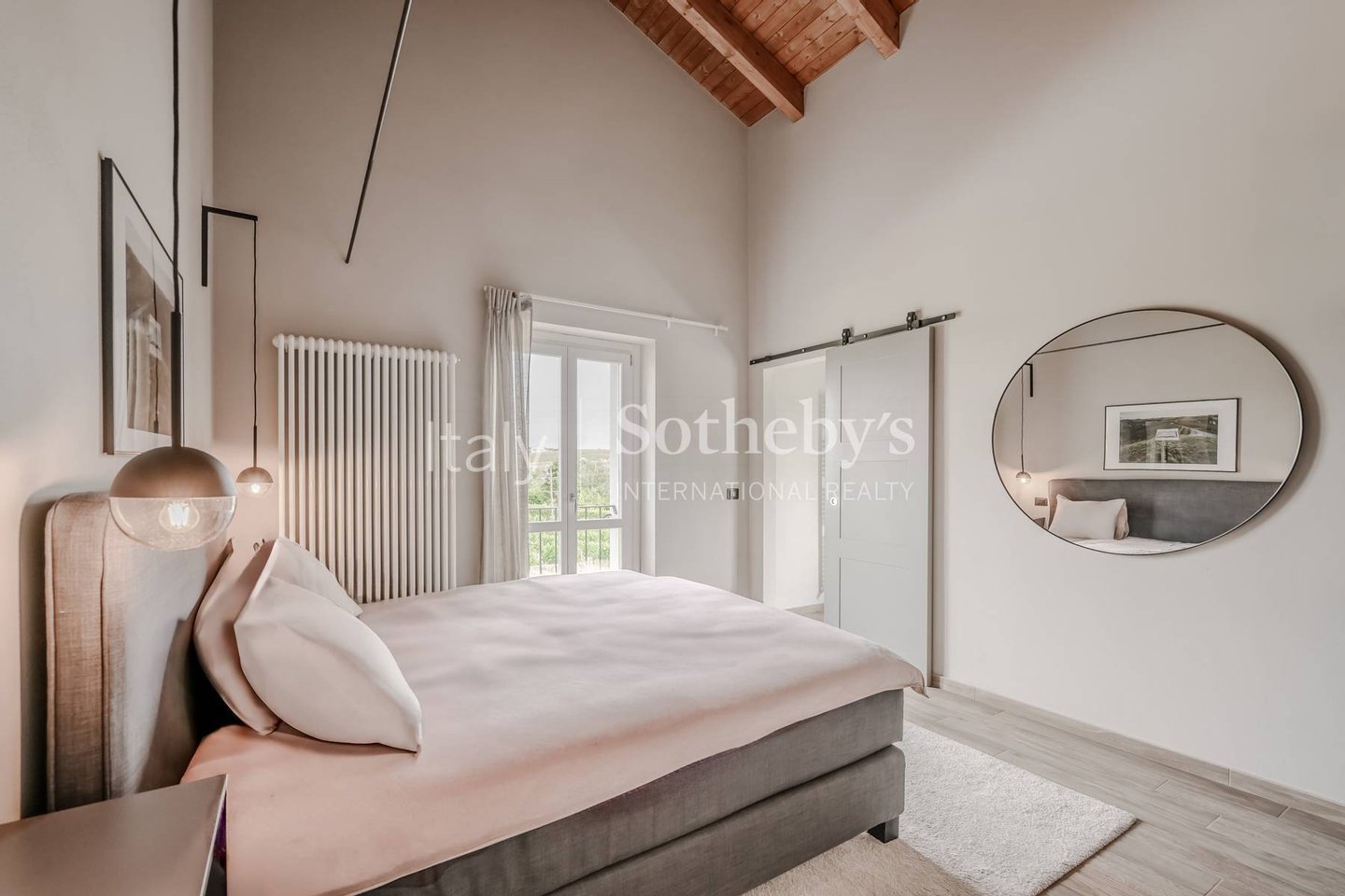 Im Obergeschoss befinden sich fünf Schlafzimmer, jeweils mit eigenem Bad, die alle herrliche Ausblicke auf die Weinberge und die sanften Hügel des Monferrato bieten - Privatsphäre und Komfort garantiert.