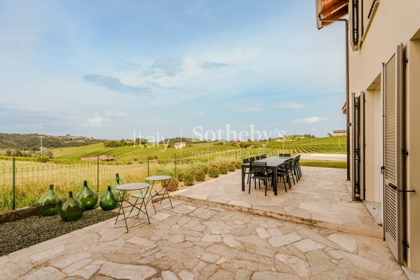 Eingebettet in die zeitlose Landschaft der Hügel rund um Nizza Monferrato - zwischen sanften Weinreben und spektakulären Ausblicken - vereint diese charmante Villa auf harmonische Weise Natur, zeitgenössische Architektur und exklusiven Wohnkomfort.