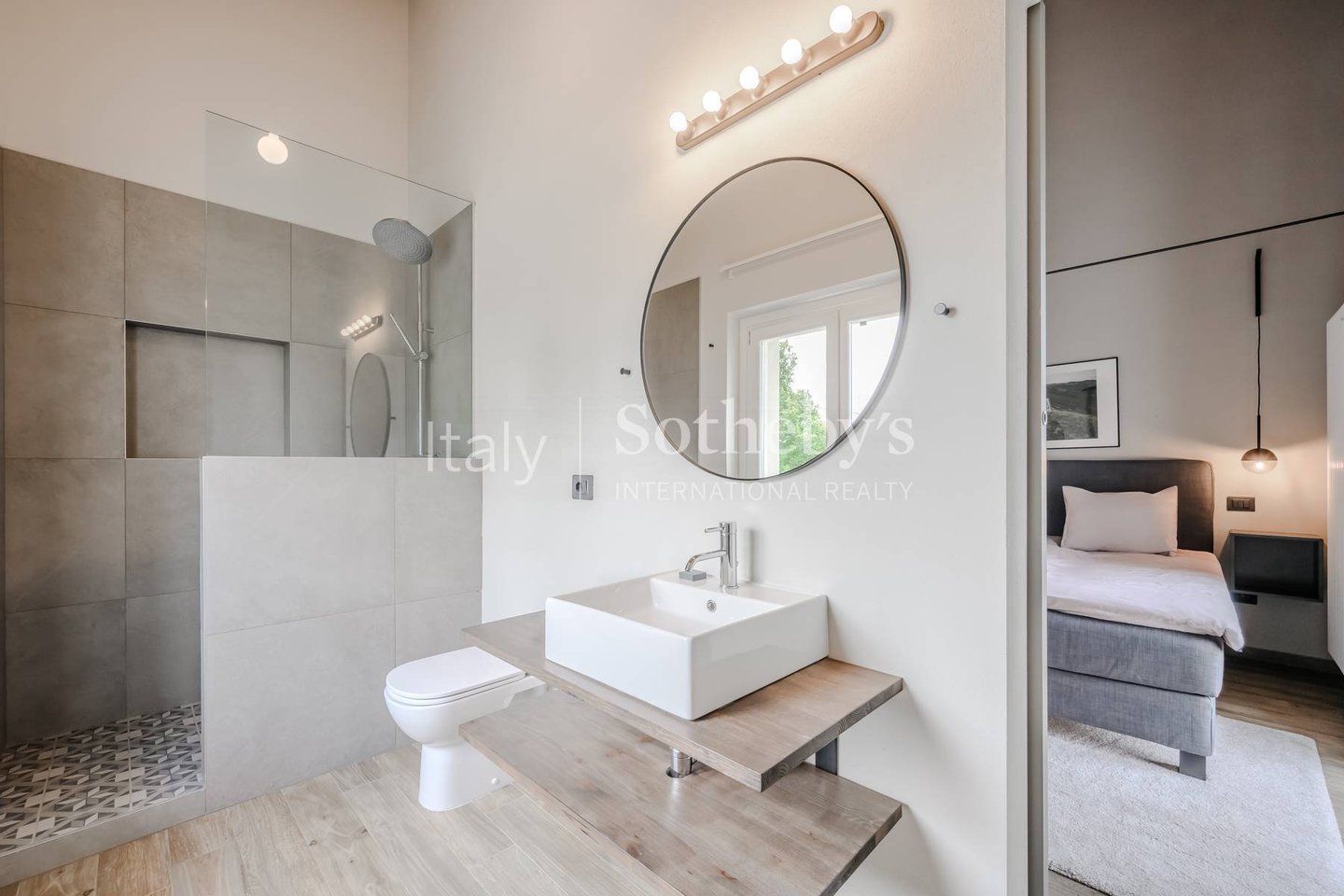 Eingebettet in die zeitlose Landschaft der Hügel rund um Nizza Monferrato - zwischen sanften Weinreben und spektakulären Ausblicken - vereint diese charmante Villa auf harmonische Weise Natur, zeitgenössische Architektur und exklusiven Wohnkomfort.Die vol