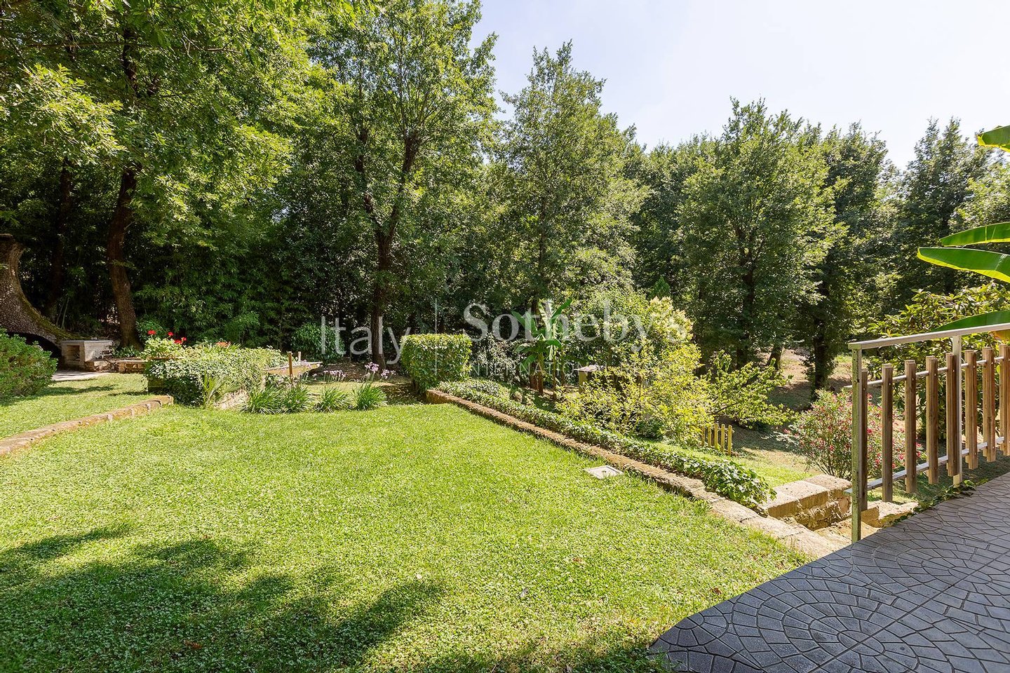 Das Anwesen ist von einem ca. 4.000 m² großen privaten Garten mit üppigen Pflanzen und großen Bäumen umgeben. Dank der vierseitigen Ausrichtung genießt das Haus den ganzen Tag über natürliches Licht.
