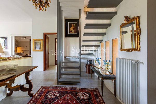 Die Immobilie ist derzeit in zwei miteinander verbundene Wohnungen auf einer Ebene unterteilt, die jedoch leicht wieder zusammengelegt werden können. Beide Einheiten verfügen über unabhängige Eingänge sowie direkten Zugang zu den Terrassen und dem Garten. Das Haus wurde konzipiert, um höchsten Wohnkomfort und gesellige Lebensmomente zu ermöglichen. Der großzügige Grundriss und die bedeutenden Raumvolumina sorgen für ein luftiges, offenes Wohngefühl. Vom einladenden Portikus führen zwei Eingänge zu den jeweiligen Wohnungen.