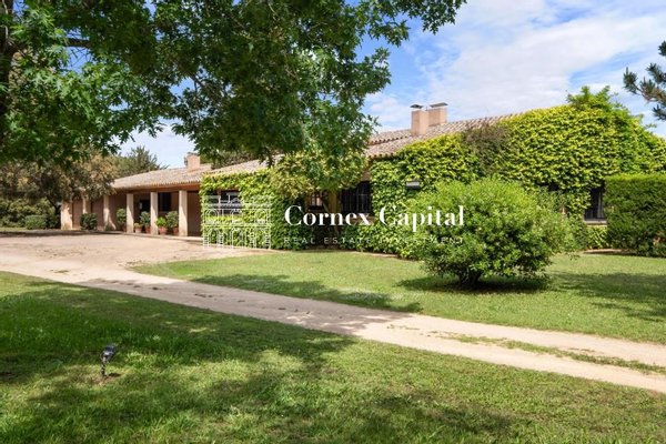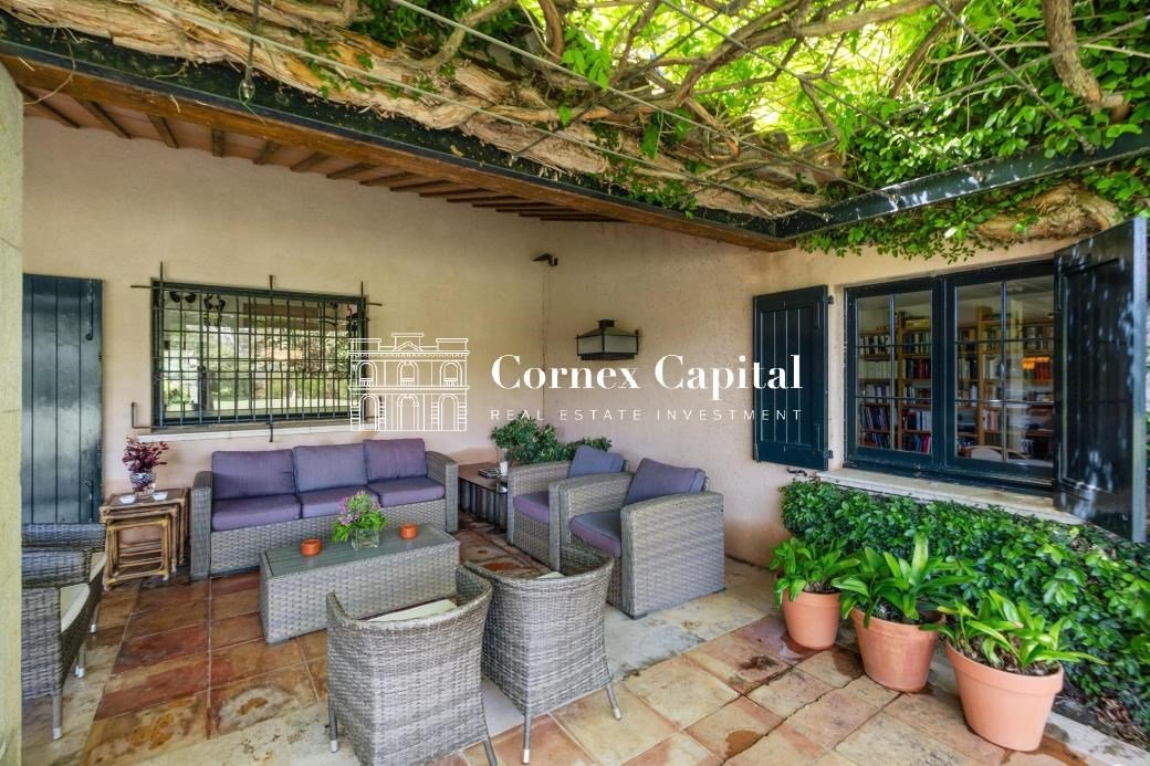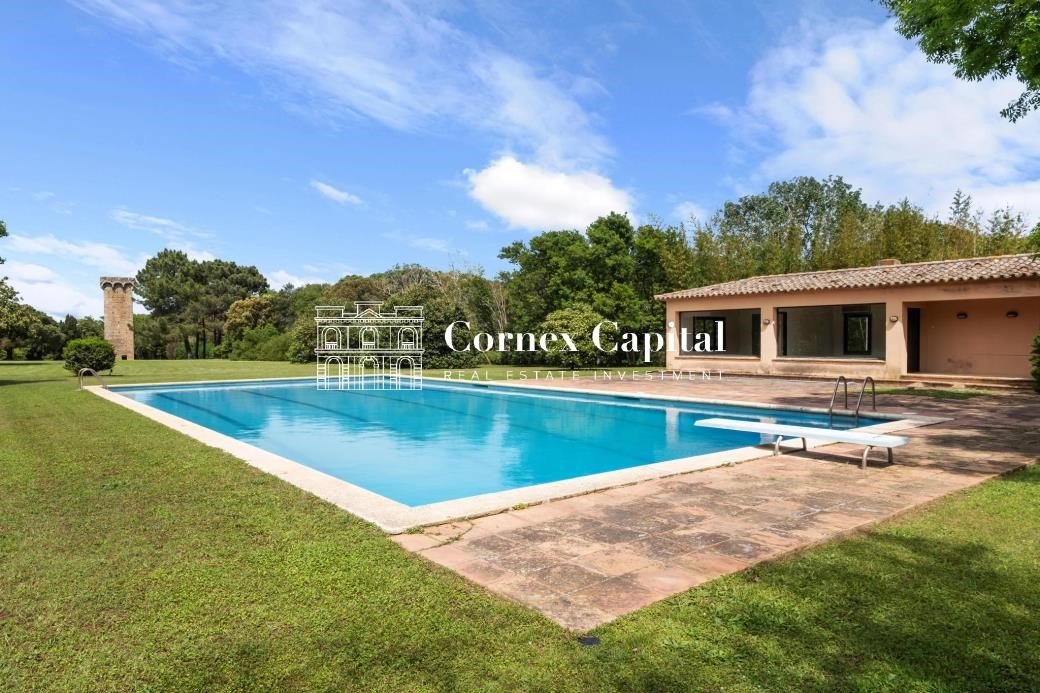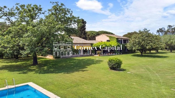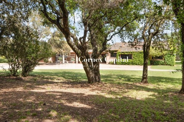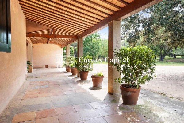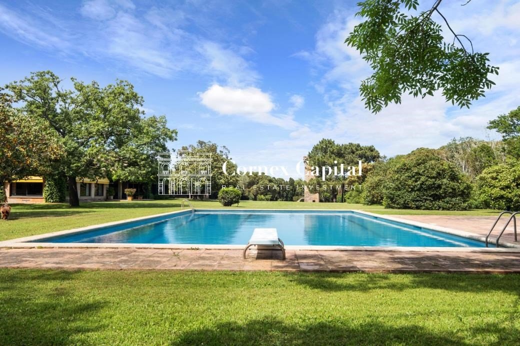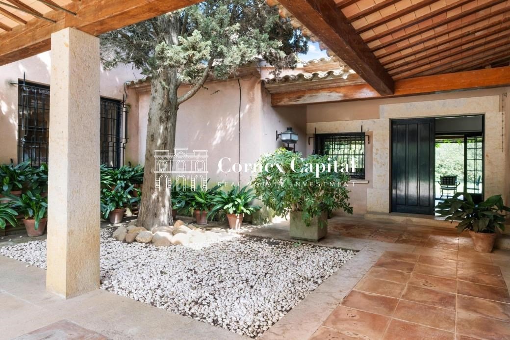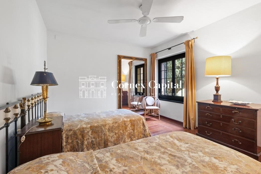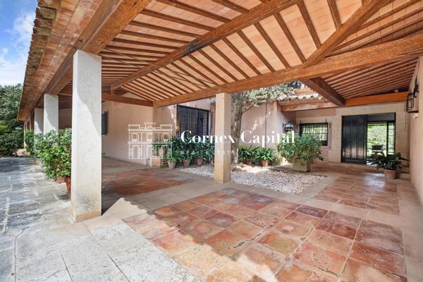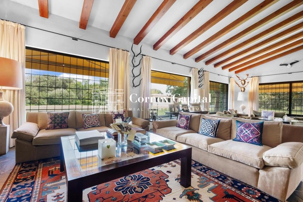 Beim Betreten des Hauses führt ein elegantes Foyer auf eine Terrasse mit Blick auf den Garten- und Poolbereich sowie auf ein Gästebad. Rechts vom Eingang befindet sich eine geräumige Küche mit Essbereich, ein informelles Esszimmer und mehrere Nebenräume: eine Waschküche, ein Personalschlafzimmer mit eigenem Bad, ein zweiter Hauswirtschaftsraum und ein Innenhof. Vom Hauptflur führt eine Treppe in den Weinkeller. Im selben rechten Flügel befindet sich ein gemütliches Wohnzimmer mit Kamin und ein geräumiges und helles Esszimmer.