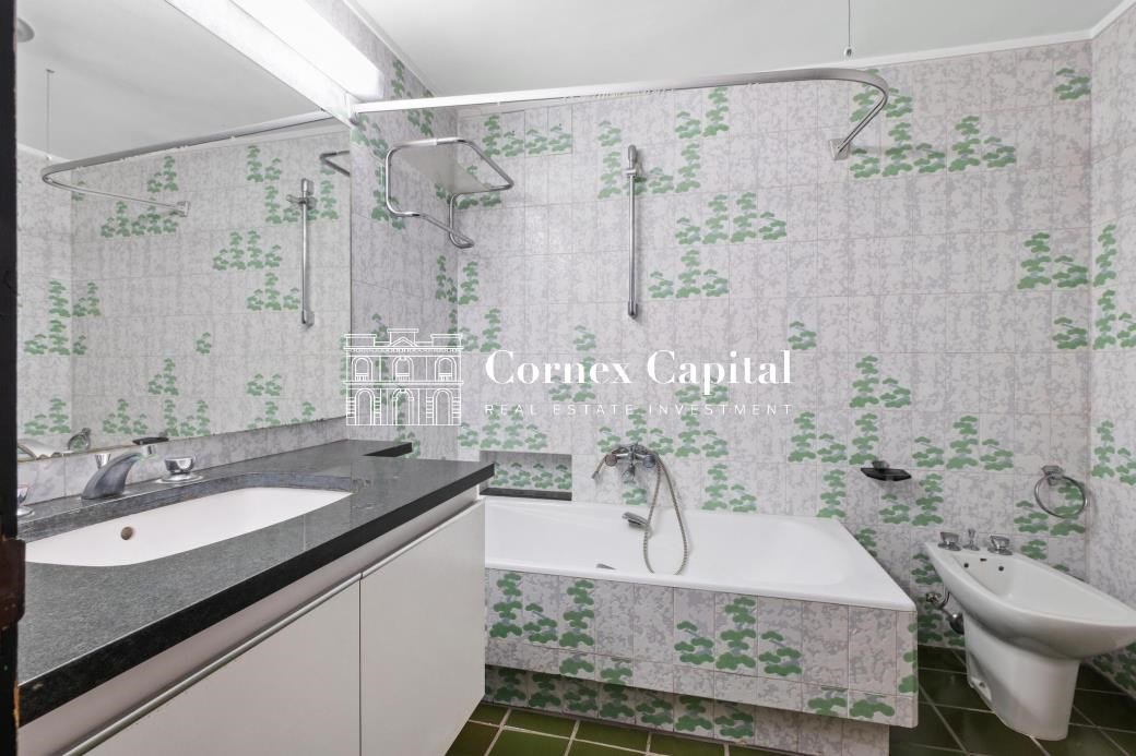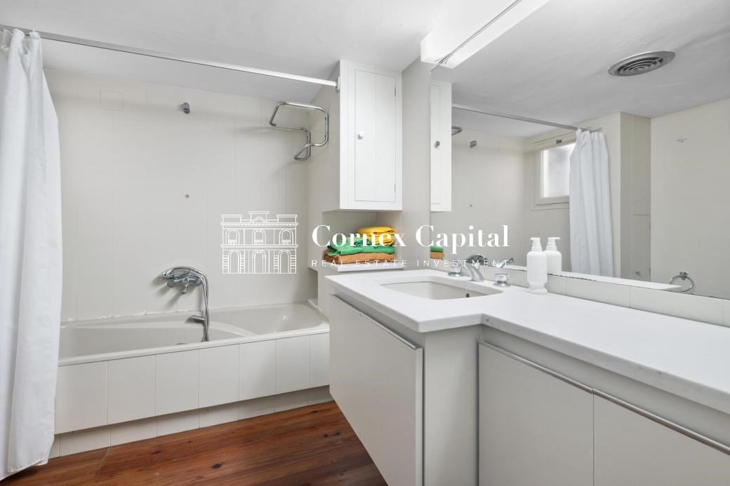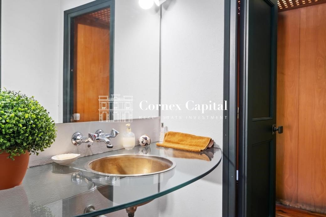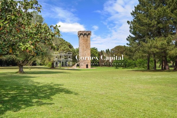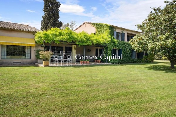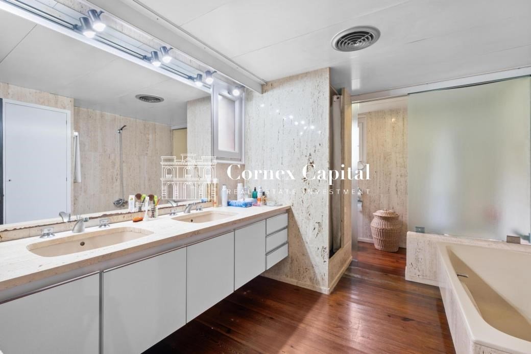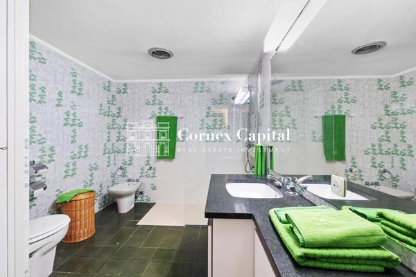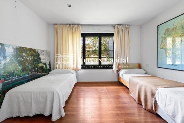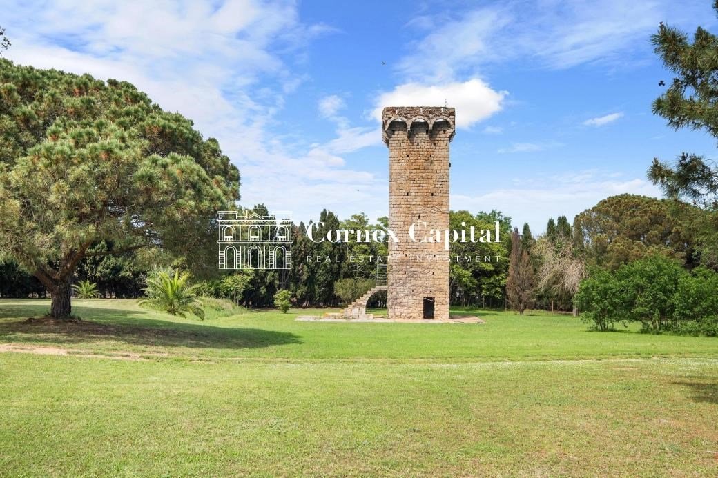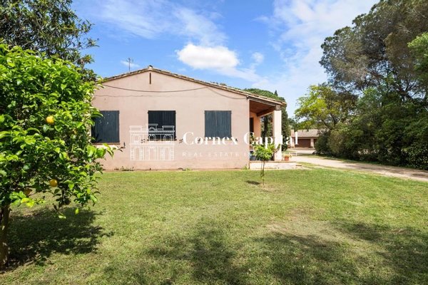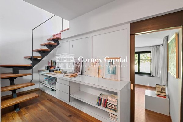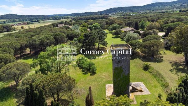 Beim Betreten des Hauses führt ein elegantes Foyer auf eine Terrasse mit Blick auf den Garten- und Poolbereich sowie auf ein Gästebad. Rechts vom Eingang befindet sich eine geräumige Küche mit Essbereich, ein informelles Esszimmer und mehrere Nebenräume: eine Waschküche, ein Personalschlafzimmer mit eigenem Bad, ein zweiter Hauswirtschaftsraum und ein Innenhof. Vom Hauptflur führt eine Treppe in den Weinkeller. Im selben rechten Flügel befindet sich ein gemütliches Wohnzimmer mit Kamin und ein geräumiges und helles Esszimmer.