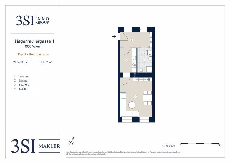 Diese charmante 1-Zimmer-Erdgeschoss-Wohnung befindet sich in einem gepflegten Stilaltbau in der Hagenmüllergasse, im Herzen des 3. Bezirks. Nach einer liebevollen Auffrischung präsentiert sich die knapp 42m2-Wohnung in einem frischen, einladenden Zustand. Sie wurde modernisiert und bietet komfortables Wohnen in einem historischen Ambiente. Die durchdachte Raumaufteilung und die schöne Ausstattung machen diese Wohnung zu einem attraktiven Zuhause. Im Innenhof besteht die Möglichkeit einer Terrassenfläche, die der Wohnung zusätzlichen Außenraum bietet und vom Wohnzimmer aus zugänglich ist. Diese kann von Seiten des Käufers nach Wunsch gestaltet werden.