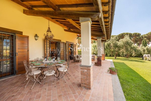 In Pescia Romana, einem renommierten Ort in der Nähe von Capalbio und dem Monte Argentario und nur fünf Minuten vom Strand entfernt, befindet sich diese wunderschöne Haushälfte einer Doppelvilla - mit privatem Zugang und auf drei Seiten vollständig