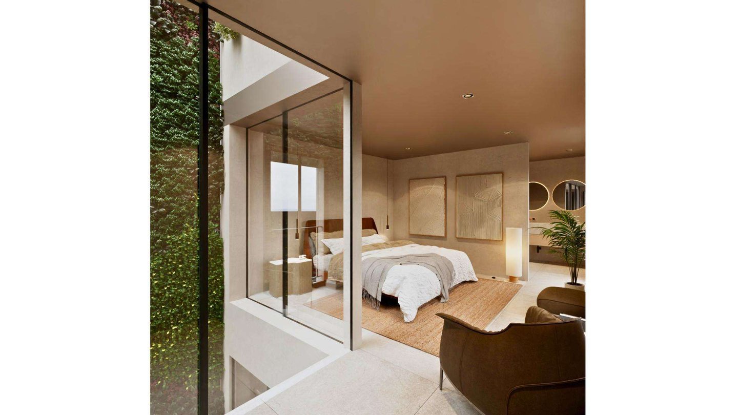 Geplant ist eine moderne Interpretation des traditionellen Stadthauses: große Glasflächen, viel natürliches Licht und hochwertige Materialien treffen auf zeitlose Architektur mit mediterranen Akzenten. Das Konzept sieht unter anderem einen etwa 27 m² großen Innenhof, eine großzügige Dachterrasse mit überdachtem Bereich und Pool sowie drei Schlafzimmer – jeweils mit eigenem Bad – vor. Große, bodentiefe Fenster sorgen in allen Räumen für einen schönen Ausblick in den Innenhof und schaffen ein helles, offenes Wohngefühl.