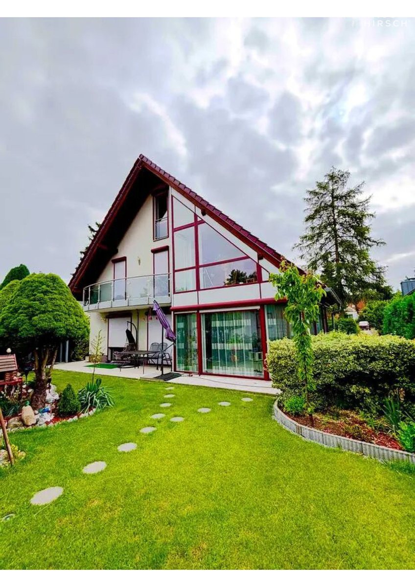 Dieses außergewöhnliche Architektenhaus aus dem Jahr 2005 repräsentiert die perfekte Symbiose aus anspruchsvoller Architektur, hochwertiger Bauweise und luxuriöser Ausstattung. Gelegen in einer ruhigen, von Grün geprägten Nachbarschaft, nur 180 Meter