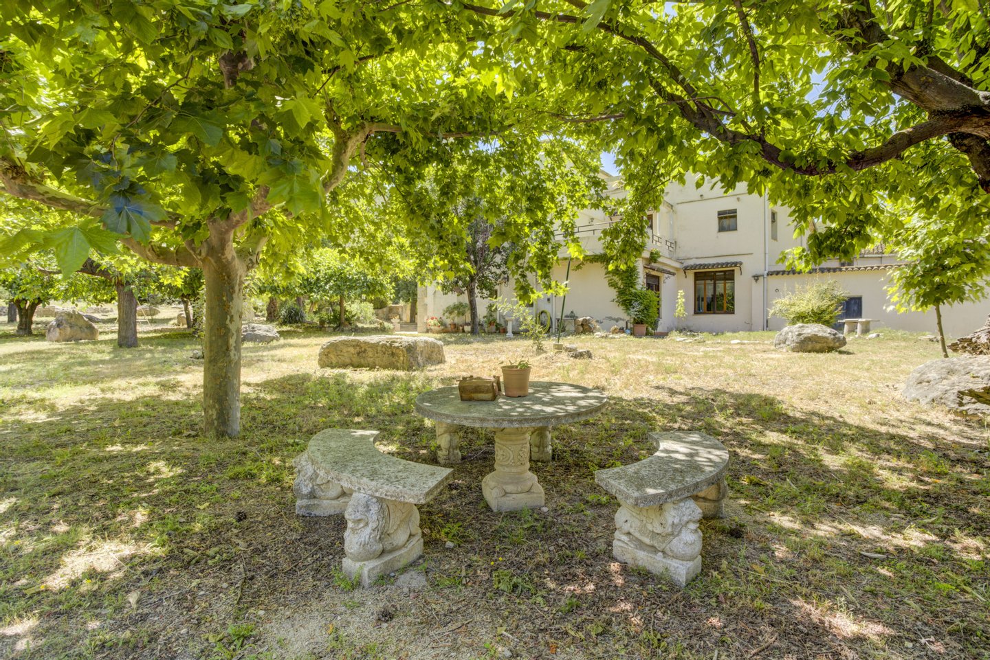 Das Anwesen hat mehrere Bereiche: die erste und die Haupt entspricht der Lage des Hauses und seine unmittelbare Umgebung. Dieser Bereich besteht aus dem Haus, das mit den Feldern des Anbaus verbunden ist, dem Bereich des Pools, der direkt aus den Gewässern der Pou Clar und einem bewaldeten Bereich für besondere Freizeitaktivitäten gefüllt ist. In Bezug auf den zweiten Bereich ist die höchste und zentralste Fläche das Gebiet der Trockenfrüchte. Es hat Olivenbäume auf fünf Ebenen verteilt, zusätzlich zu einem Gebiet für die Zucht von Pferden mit Stallen gewidmet. Was die dritte Zone, die niedrigste Fläche, hat sie einen Platz für Gartenpflanzen. Schließlich ist die vierte Zone und weniger Erweiterung, ein wilder Zustand mit Vegetation der Fläche mit einem semi-permanent Wasser-Kurs.