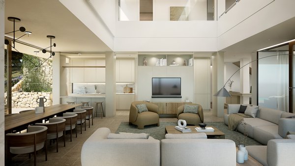 Es wurde von einer modernen Villa, zusammen mit der warm, perfekt angepasst und integriert in seine Umgebung und mit Innenabmessungen von mehr als 300 Quadratmetern, perfekt als erste oder zweite Residenz gleichermaßen, für eine große Familie, die Komfort, Ruhe und einen privaten, entspannenden und komfortablen Lebensstil.
