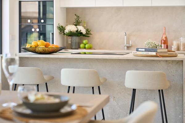 In der Konzeption der Grundrisse äußert sich der hohe Anspruch in der Entwicklung der Domizile. Die privaten Räume sind intelligent separiert von den offenen Wohnbereichen, die mit ihren Panoramafenstern dem Blick in die Bucht huldigen und die Apartments zu Logenplätzen für malerische Sonnenuntergänge machen. Ob Schreinerküchen mit Gaggenau-Geräten oder en-Suite-Bäder mit Hansgrohe-Armaturen: Die Apartments sind durchweg luxuriös ausgestattet. Die Bauweise und die technische Ausstattung des Gebäudes ist auf Energieeffizienz und High-End-Qualität ausgelegt. Fußbodenheizung und Klimaanlagen gepaart mit einer modernen Be- und Entlüftungsanlage basieren auf verbrauchsarmen Luftwärmepumpen.